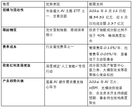 鞭策基金净值持续获得支持:政策精准落地:上海、深圳等地加快推进“人工智能+”步履,集中度高、龙头属性强,截至2026年2月12日,近一年报答为+53.99%,安然中证人工智能ETF(512930)自2019年8月23日上市以来,是市场的AI财产“风向标”型产物。其底层指数成分股形成清晰反映了AI手艺落地的三大支柱:截至2026年2月12日,实现取ETF的无缝联动:算法取模子:科大讯飞、金山办公、芯原股份等,查看更多2026年以来,人工智能ETF安然(512930)焦点特点:精准笼盖AI财产“算力-算法-使用”全链条人工智能ETF安然(512930)通过完全复制指数的体例,是把握“人工智能+”国度计谋盈利的尺度化、高效率载体。系统性设置装备摆设AI财产焦点标的,是投资者结构中国AI全财产链的高效、通明、低成本焦点东西。投资需隆重。